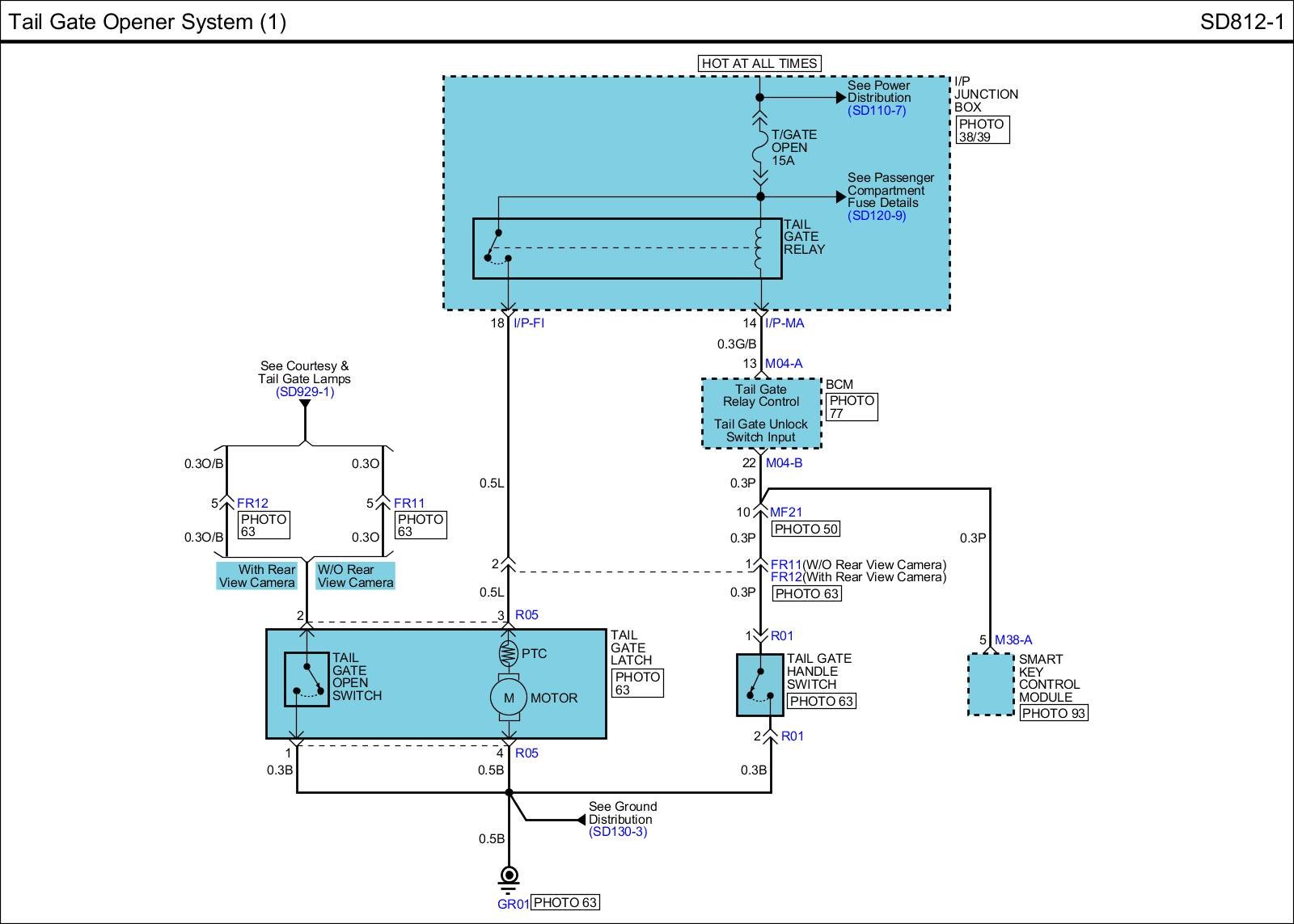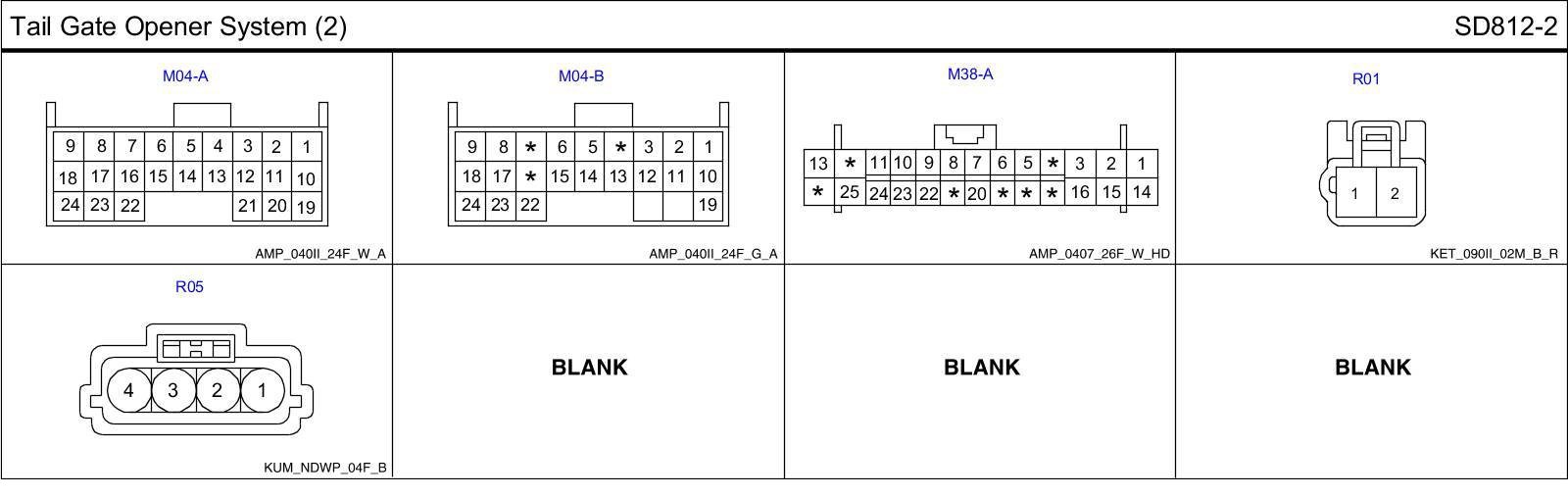 Tail Gate Opener System (2) Connector Pin Outs: