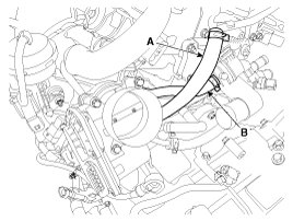 5. Disconnect the vacuum hose (A) and PCSV (Purge control solenoid valve) hose (B).