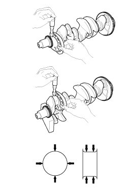 If the proper clearance cannot be obtained by using the appropriate larger or smaller bearings, replace the crankshaft and repeat the check procedure.