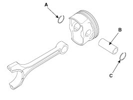 (4) Install the snap ring (C) in the other side after inserting the piston pin.