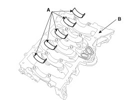 (1) Align the bearing claw with the groove of the cylinder block, and push in the 5 upper bearings (A).