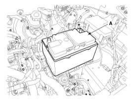 2. Disconnect the battery terminals (A). The negative terminal first.