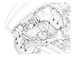 13. Disconnect the wiring connectors and harness clamps, and then remove the wiring and protectors from the cylinder head and the intake manifold.