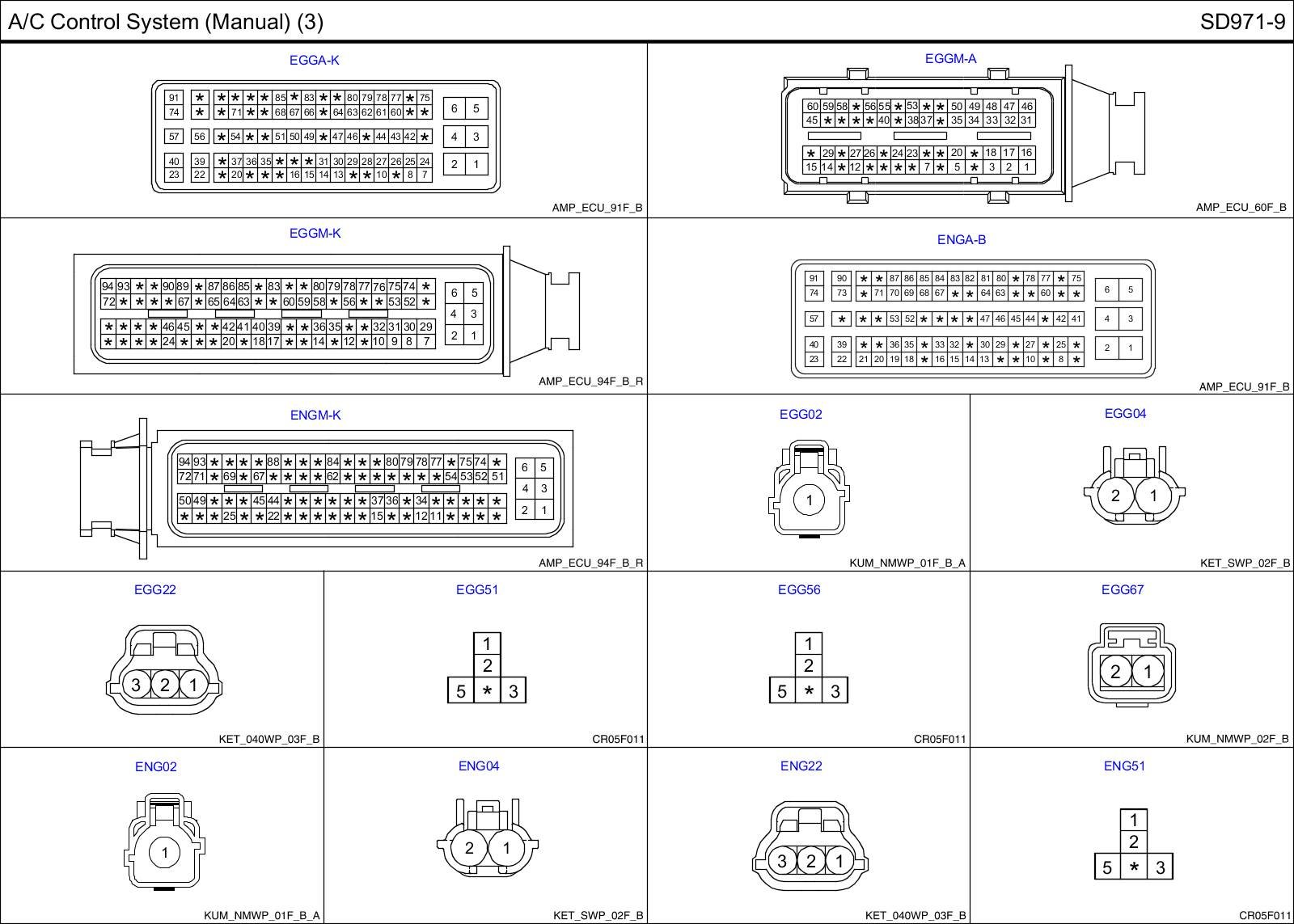 A/C Control System (Manual) (3) Connector Pin Outs: