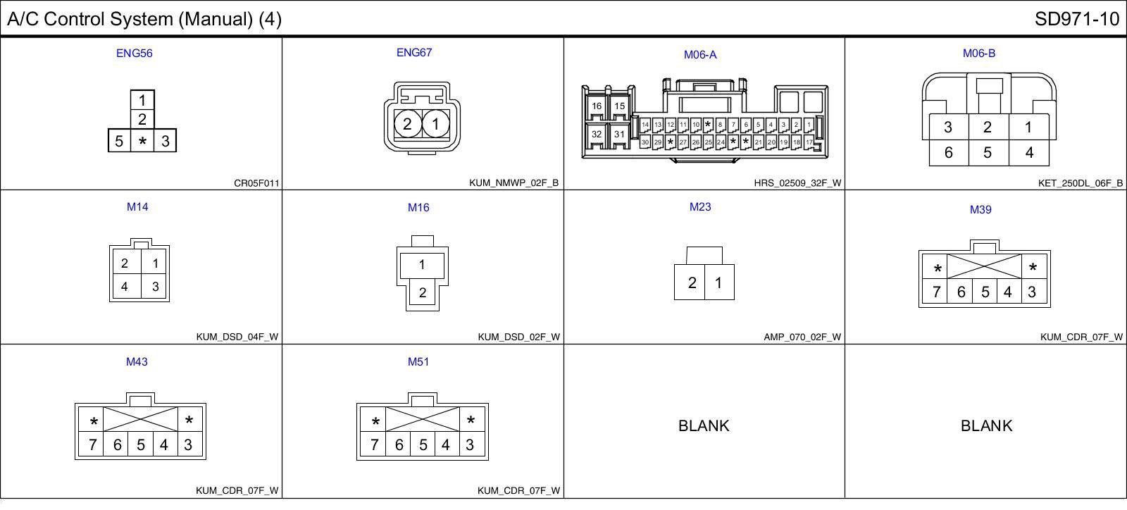 A/C Control System (Manual) (4) Connector Pin Outs: