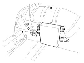 3. Disconnect the DC/DC converter connector (A) and then remove the DC/DC converter (B).