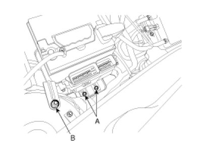 4. Remove the TCM after removing the mounting bolts (A-2ea) and nut (B).