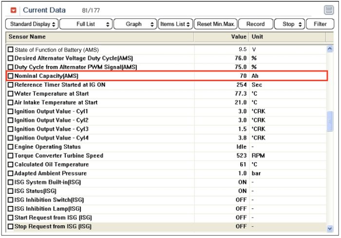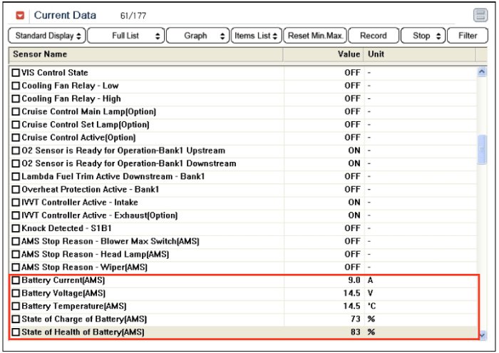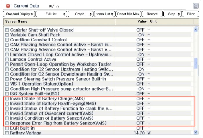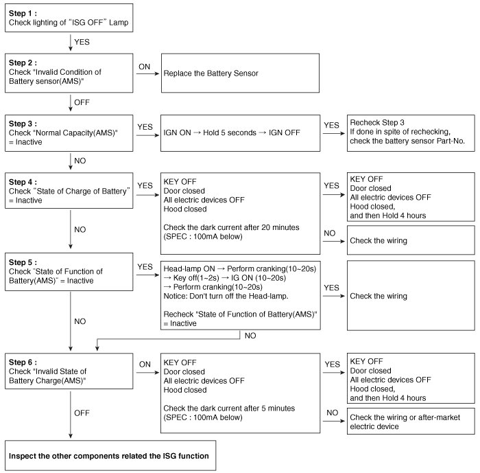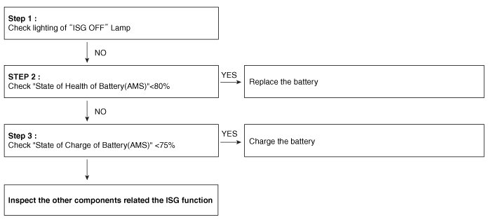 If the ISG function is not operated in spite of no DTC, inspect the ISG system as below.The GDS tool shows the current data about the ISG function for inspection.