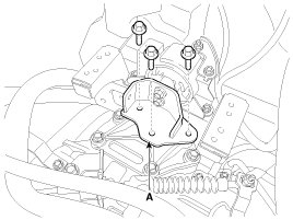 10. Remove the automatic transaxle mounting support bracket (A).