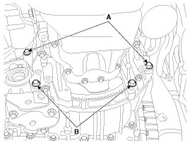 18. Remove the automatic transaxle with a jack after removing the mounting bolt (A-2ea, B-2ea).