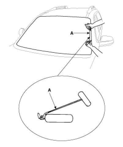4. Cut out the windshield sealant using the sealant cutting tool (A)(09861-31100).