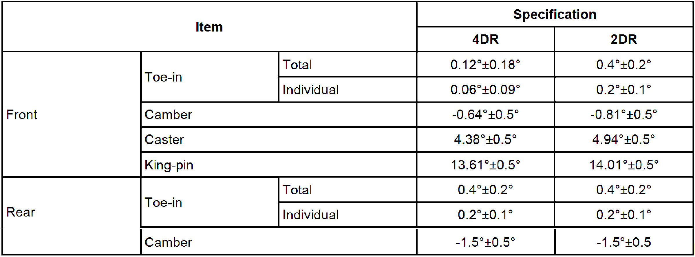 Wheel Alignment Specifications