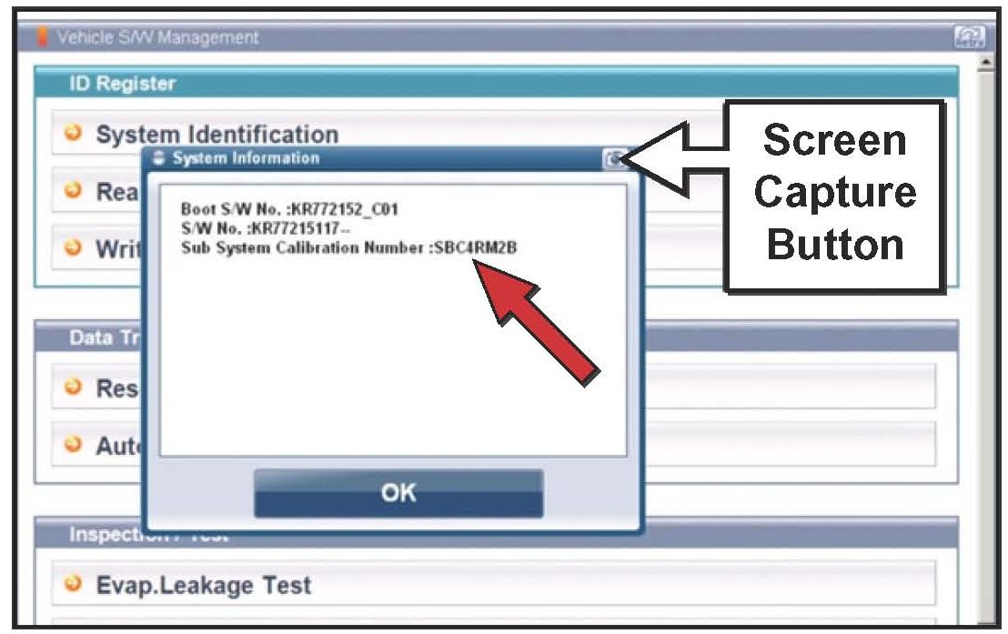 5b. Do a screen capture of "Calibration ID" or "ROM ID" number for later form entry.