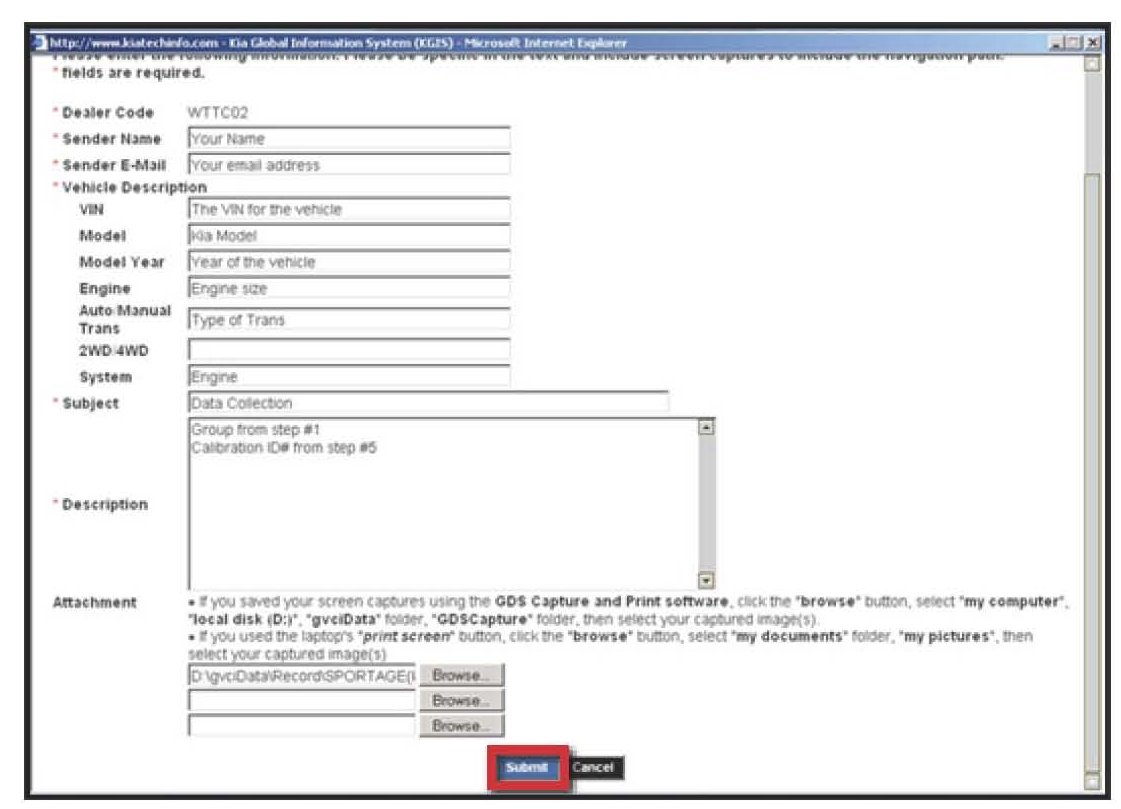VIN inquiry data for this repair is provided for tracking purposes only. Kia retailers should reference DC004 when accessing the WebDCS system.
