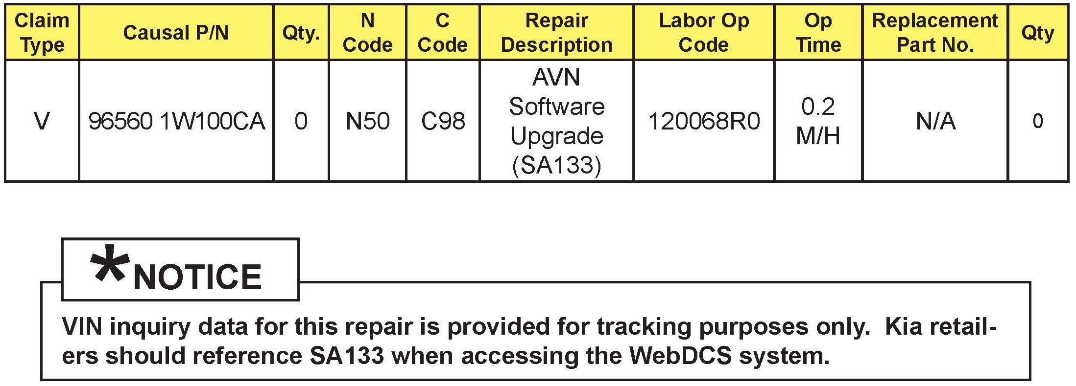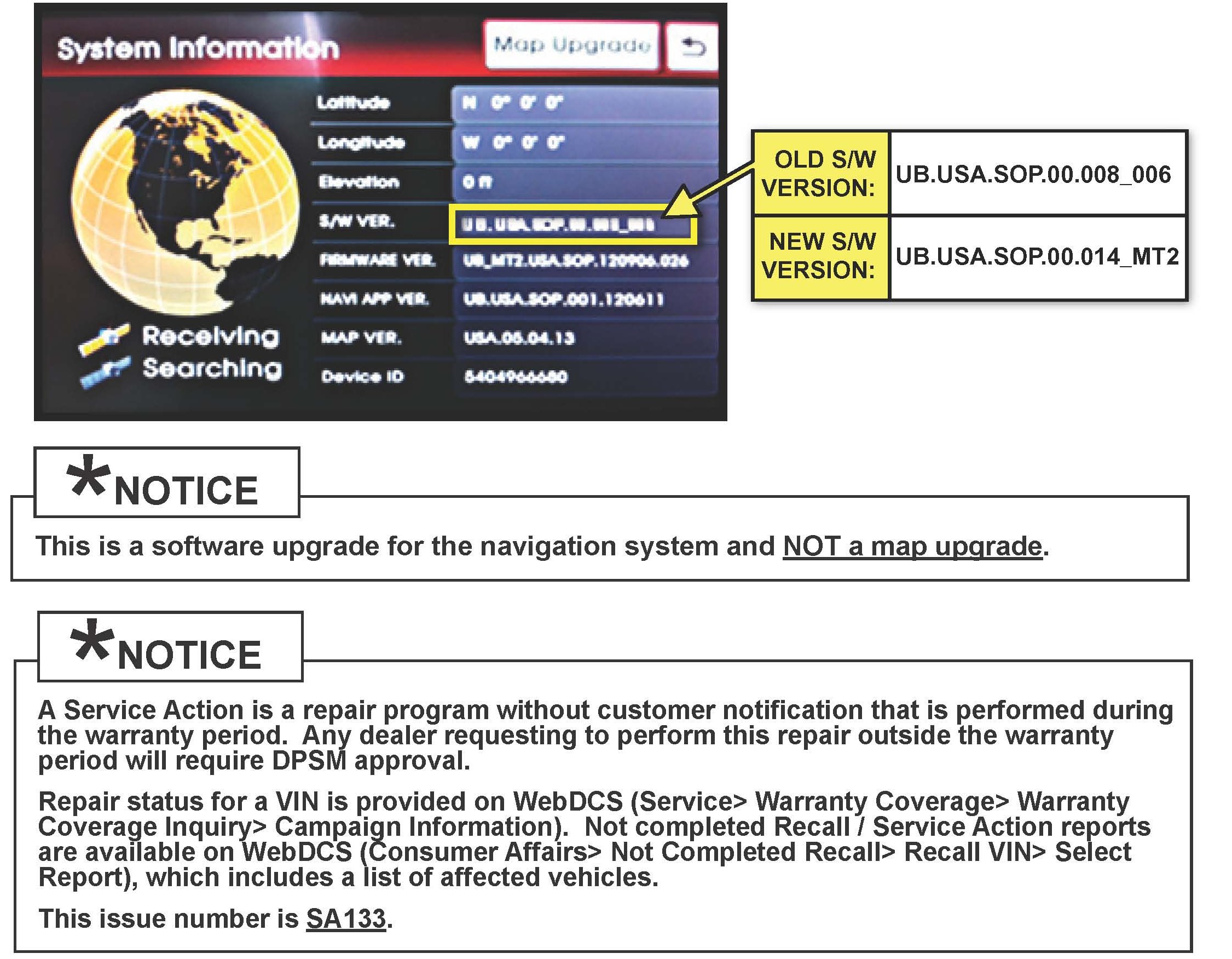 SERVICE ACTION: AVN SOFTWARE UPGRADE (SA133)