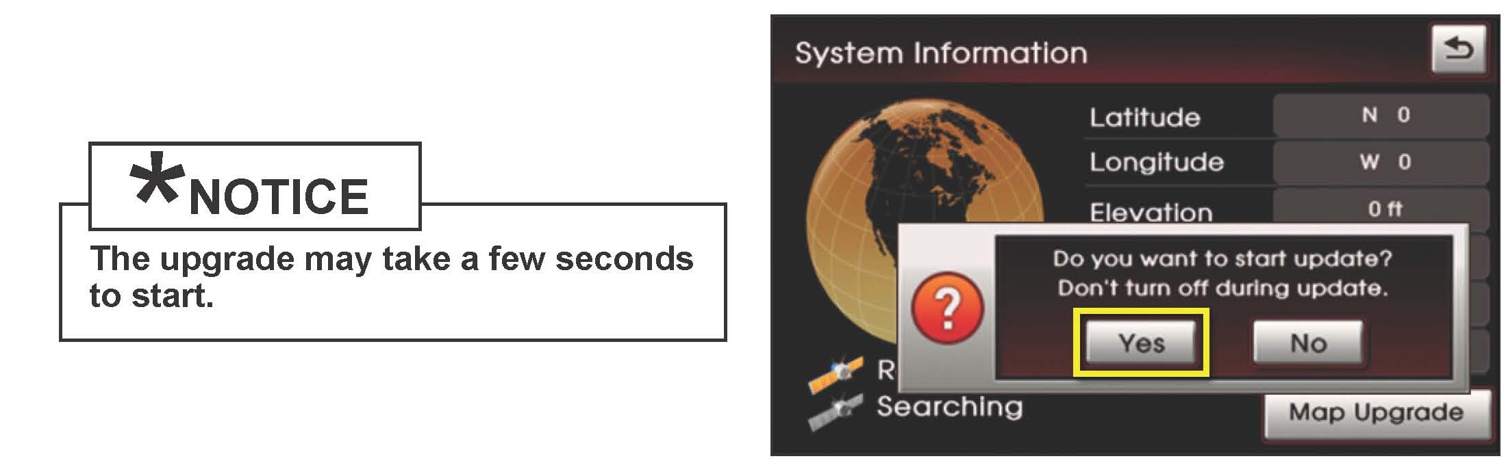15. Start the upgrade by pushing the "Yes" button on the screen.