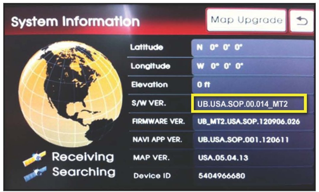 This bulletin describes the procedure to update the navigation system software and modify the phone pairing logic in 2013MY Rio vehicles with navigation system (AVN) and manus transmission, produced From June 12, 2012 to Aug. 29, 2012. Verify navigation system software version by referring to the table; then follow the procedure outlined in this TSB to update the navigation system. Kia is requesting the completion of this Service Action on all affected vehicles in dealer stock prior to delivery. Before conducting procedure verify that the vehicle is included in the list of the affected VINs.