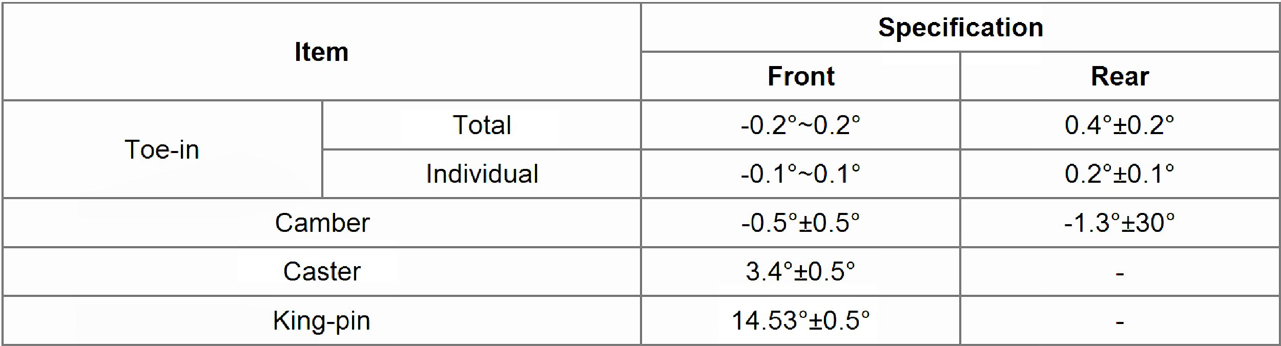 Wheel Alignment Specifications