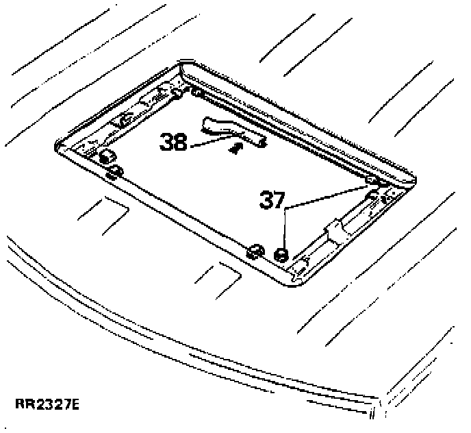 NOTE: Lower vehicle headlining ONLY if removing motor mounting bracket and guide tubes. Note that the headlining is secured around the roof opening using an adhesive tape. Remove edge trim and eight edge clips, carefully peel back headlining to remove.