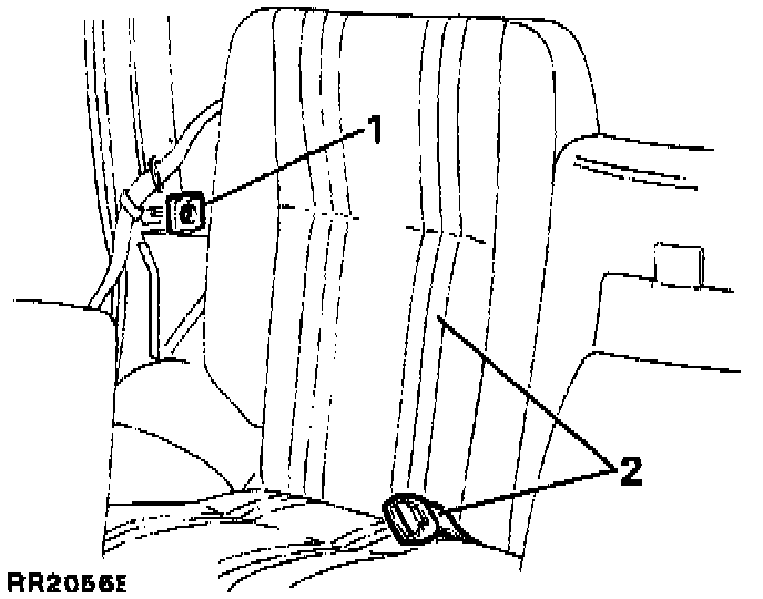 2. While folding the seat forward feed the rear seat lower part of the seat belt through the opening between the seat back and cushion.