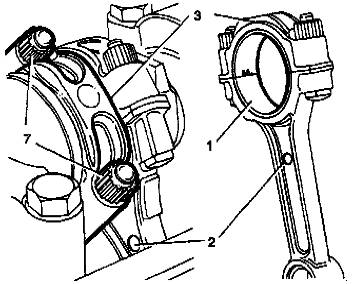 3. When both connecting rods are fitted, the bosses will face inwards towards each other.