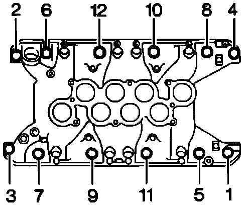 24. Fit all manifold bolts and tighten them a little at a time, evenly, alternate sides working from the centre outwards.