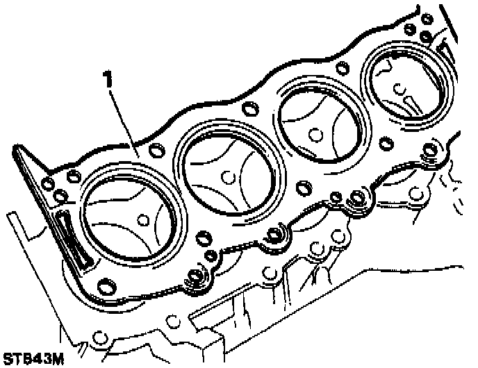 1. Apply Hylomar SQ32M sealing compound, or equivalent, to the notches formed between the cylinder head and block,