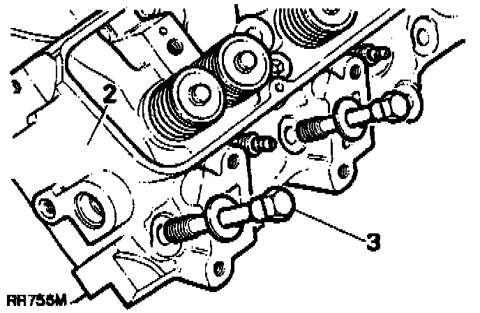 2. The rocker shafts are handed and must be fitted correctly to align the oilways.