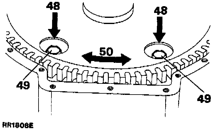 49. Remove the two bolts that are visible through the access holes, which secure the flexible drive plate to the torque converter. Mark one of the access holes and one of the bolt holes with some means of identification to enable the unit to be fitted in the same position on re-assembly to maintain the original build setting.