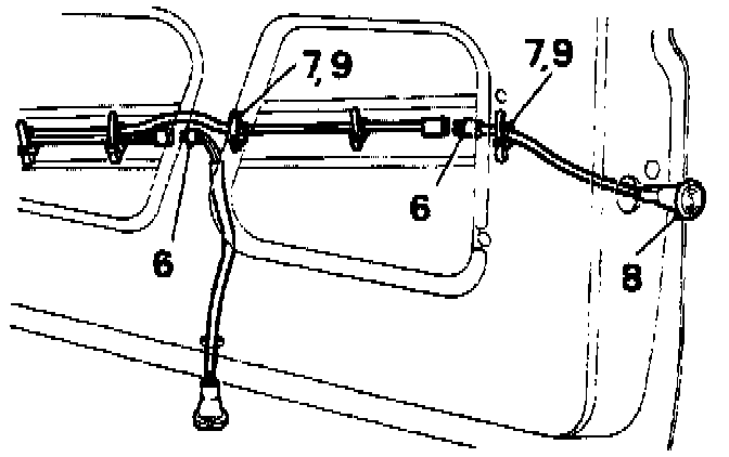 NOTE: Ensure the door lamp wiring harness is securely clipped to the lower stiffener plate within the door to prevent damage occurring to the electrical leads when the door glass is in its lowest position.