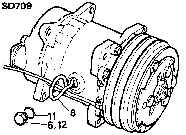 SD 709: fifteen to sixteen graduations. Add or remove oil as necessary until the mid-range figure is obtained. It is recommended that a syringe is used for adding or removing oil. Use only the correct compressor oil.