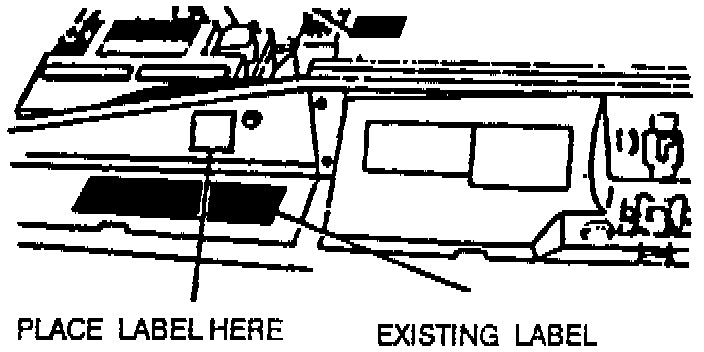9. After cleaning the surface, complete and affix a Service Campaign label to the vertical surface of the radiator support panel next to the green Emissions Label. Spray the label with a clear acrylic coating (such as Krylon 1301) for weather durability.
