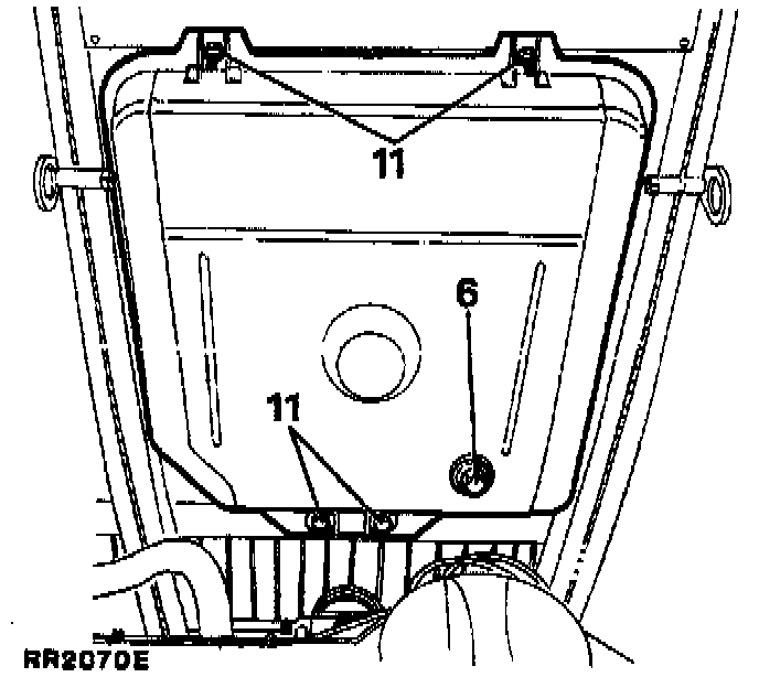 11. With assistance from a second person supporting the fuel tank, remove the four tank fasteners.