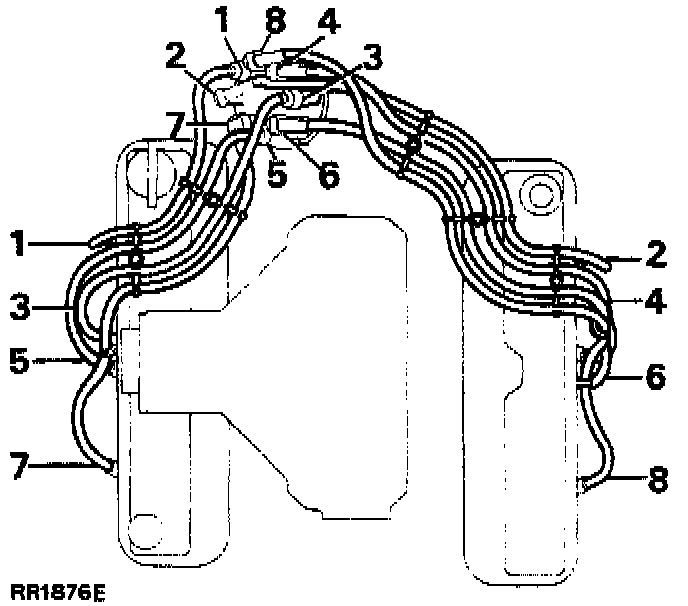 5. Ensure that replacement H.T. leads are refitted in their spacing cleats in accordance with the correct layout illustrated. Failure to observe this instruction may result in cross-firing between two closely fitted leads which are consecutive in the firing order.