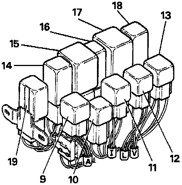 Steering column mounted relays (early 1989 models) viewed with the lower dash panel removed.