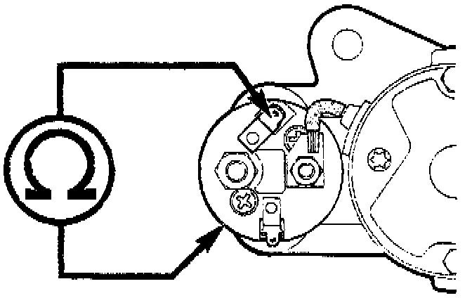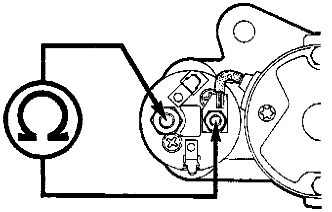 23. Check the continuity and resistance value of windings by connecting an ohmmeter as shown.