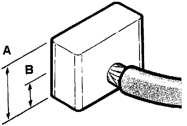Brush length new, Dimension A is 9mm (0.354 in). Minimum brush length, Dimension B is 3.5mm (0.138 in).