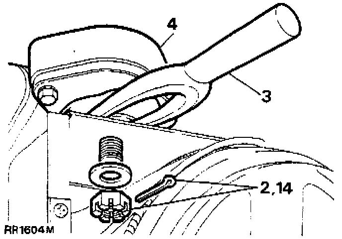 3. Fit the pivot bracket complete with ball joints to the rear axle. Tighten the nut (14) to 176 Nm (130 ft lb).