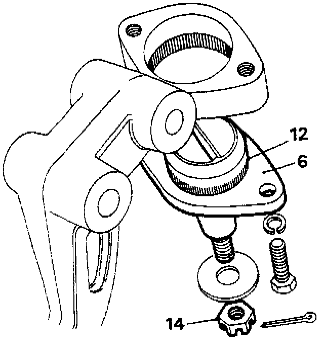 1. Press the knurled ball joint (12), into the pivot bracket.