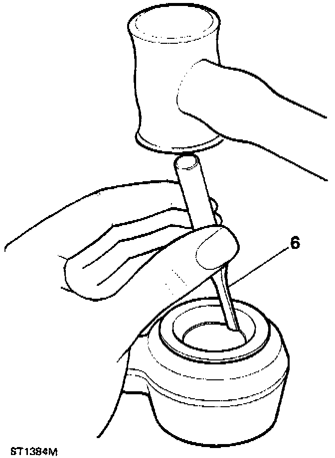 6. Using a sharp-edged punch or chisel, drive the ball lower socket from the housing.