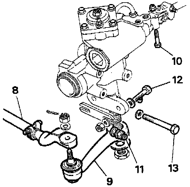 13. Remove the fasteners attaching the power steering box to the chassis side member.