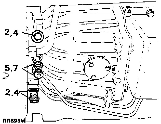 2. From underneath the vehicle, using a suitable wrench remove the two hexagon headed plugs situated in the intermediate plate, catching any oil that may leak from the plate.
