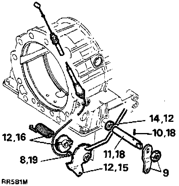 15. Fit connecting rod to detent plate and locate in the box by pushing the selector shaft through from outside of the casing.