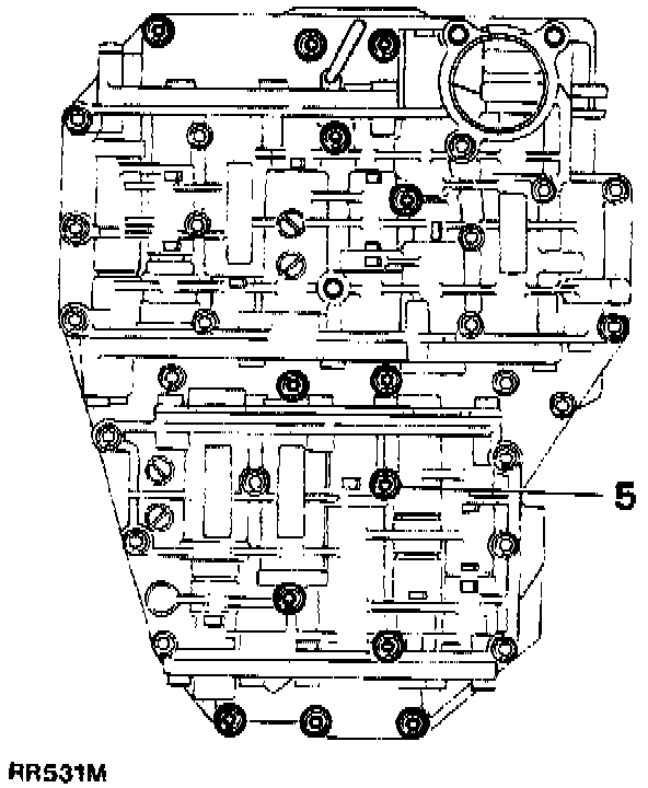 5. Using Torx bit TX27, unscrew the thirteen Torx headed bolts which retain the valve block to the transmission.