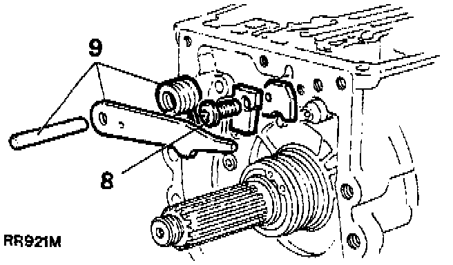 9. Disengage the spring and remove, also the pin and pawl.