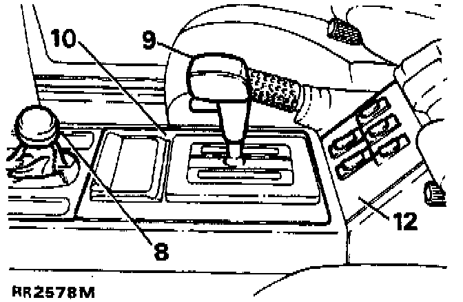 10. Carefully pry the inset panel out of the floor mounted console, complete with gear selector illumination panel and ashtray. Disconnect the electrical multi - plug to the graphics panel, and remove the inset panel.