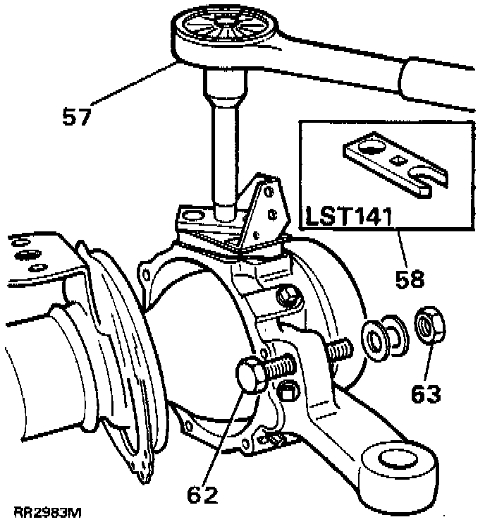 63. Fit the brake disc shield, leaving the middle fixing nut loose until the lock stop has been set.