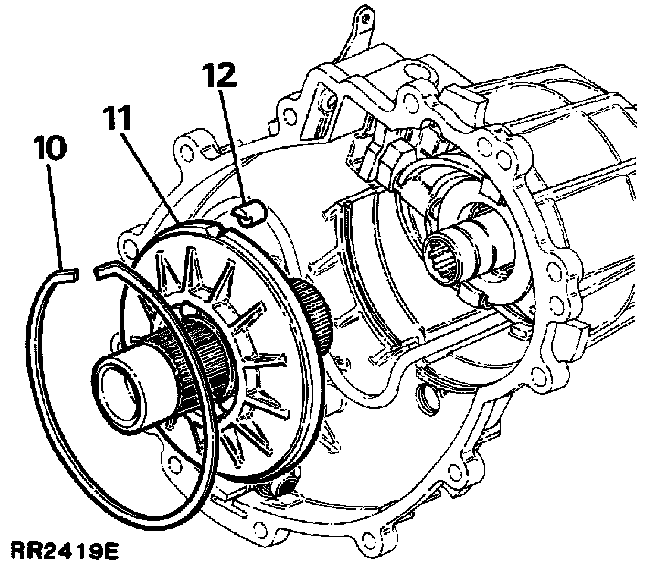1. Remove the six bolts and withdraw the rear output housing complete with output shaft.