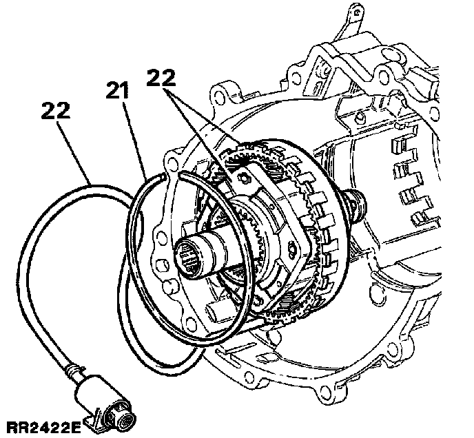 21. Turn the casing over and remove the large snap ring retaining the planetary set.