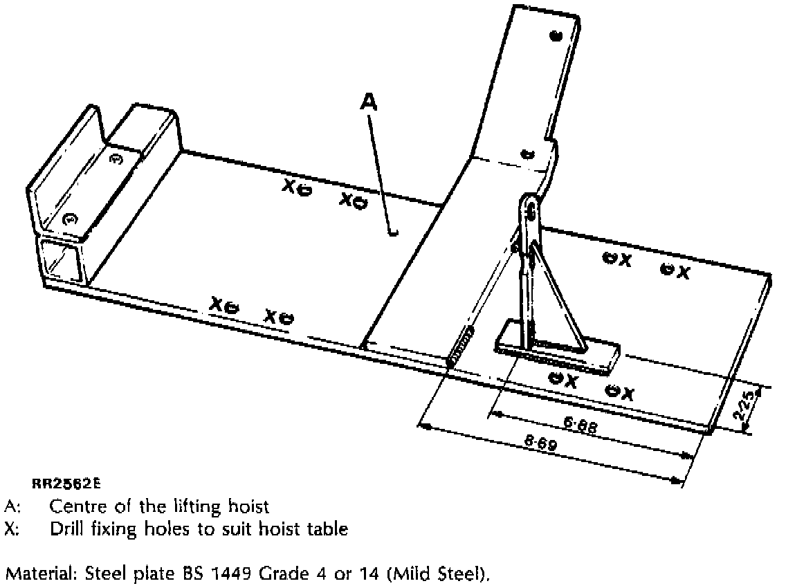 NOTE: Four holes (A) to be countersunk on underside to suit hoist.
